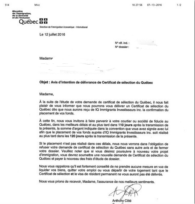 移民顾问向她推荐了魁省投资移民,申请条件相对有优势:拥有超过160万加币的净资产;资产是通过合法商业努力所得;最近5年中有2年以上企业管理经验,承认部门经理管理的经验;投资80万加币(5年后政府归还本金,无利息)或投资22万加币(一次性支付不返还),两种方式任选其一;申请人全家符合体检要求及安全背景调查要求,且全家没有犯罪记录。最终,刘女士当场就签约了。由于刘女士个人经历简单,个税缴纳良好,因此获得免面试通过信。
