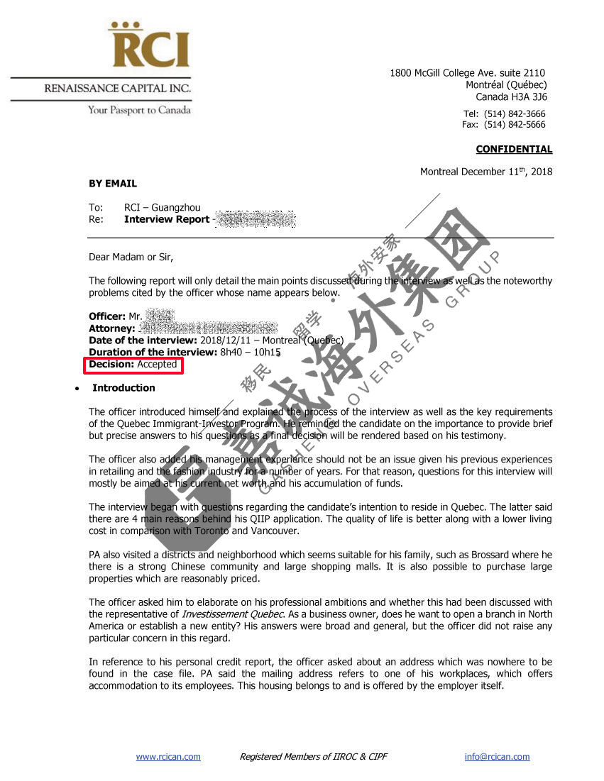 在移民的过程中, 始终相信办法总比困难多。感谢客户的努力与配合,感谢文案同事、顾问团队的专业工作,终于成就这次的面试通过!