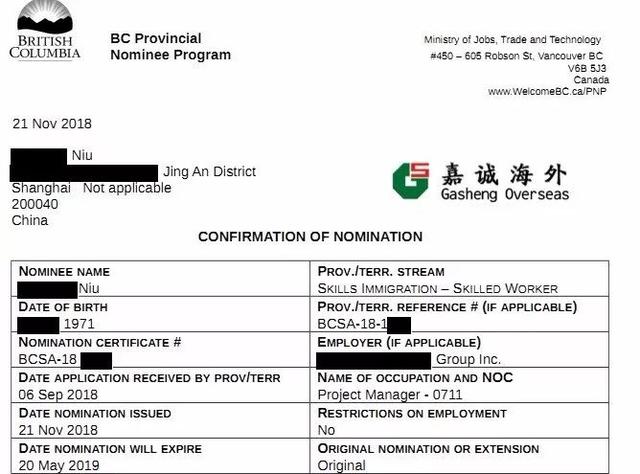 L女士整个办理过程非常顺利,十月底递交的省提名,十二月底就拿到了省提名获批函,仅仅两个月。从签约到办理再到最后获批,L女士对 的工作效率及服务态度都给予了高度评价。