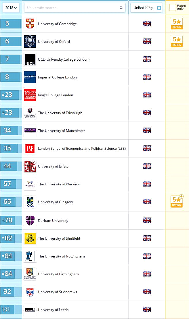 解读:和去年相比,英国大学表现逊色,排名中的76所英国大学中有51所相较去年名次有所下降。根据QS分析,这一定程度上反映了财政支持减少、兼职教师增加、脱欧等所带来的负面影响,同时其他国家高等教育水平也在不断提高。