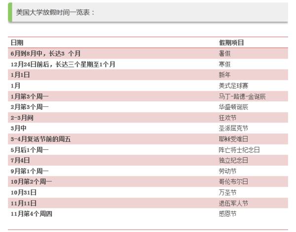 美国大学放假时间之传统节假日介绍: