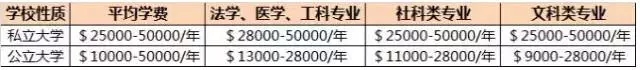 去美国留学,学费一直是学生和家长绕不开的话题。一般情况下,美国公立大学的收费是低于私立大学的。(下图主要针对本科院校)
