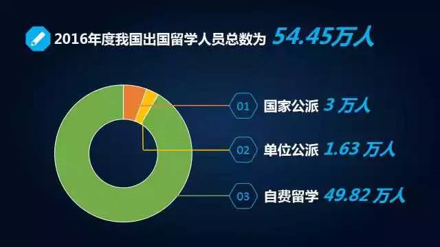 教育部召开2016年最新中国留学大数据的新闻发布会的数据显示,2016年度我国出国留学的总数为54.45万人,这一数据与去年相比增加了2.08万人。中国成为世界上最大的国际生源输出国。