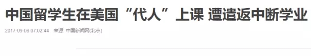 今年九月,一名即将在美国就读大三的中国留学生被美国机场海关人员“扣押”,并在询问后遭到遣返。据该同学在美国的代理监护人称,这位同学被遣返的原因是在上个学期帮同学上课,结果被教授发现,并上报了学校的学术监督机构,而移民局与校方有联网,可同步了解事件。在美国大学,代人签到、上课的行为同样被定性到事关“诚信”的高度,后果很严重。