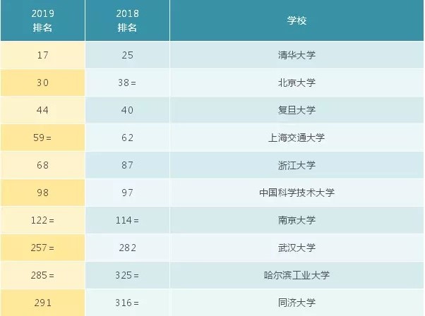 2019年QS世界大学排名亮点