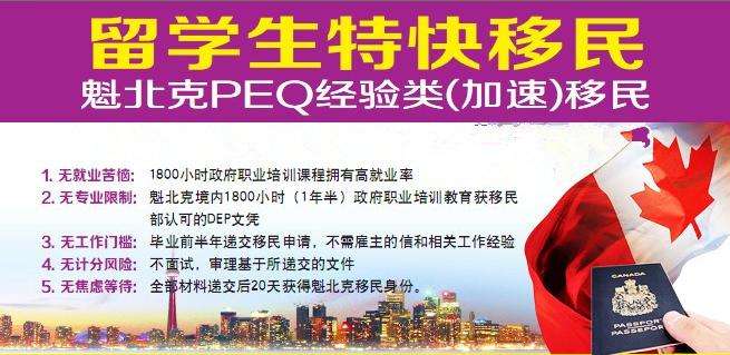 加拿大职业技术人才严重短缺,魁省利用联邦政府授予的独立立法权,于2010年2月14日通过了一项新法案:《魁北克经验类移民法》,简称PEQ,允许在魁省完成职业培训的留学生快速获得加拿大移民身份,以满足加拿大劳工市场对职业技术人才的迫切需求。从而实现新移民能够快速地融入加拿大社会,促进加拿大经济发展。魁省经验移民是唯一无名额限制的快速移民途经。