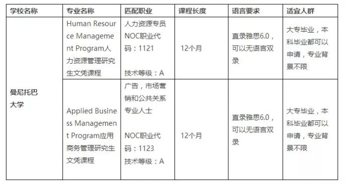 ◆曼省毕业生只需要持有为期1年的雇主合同、职业符合曼省紧缺职业列表、无需工作即可申请移民!
