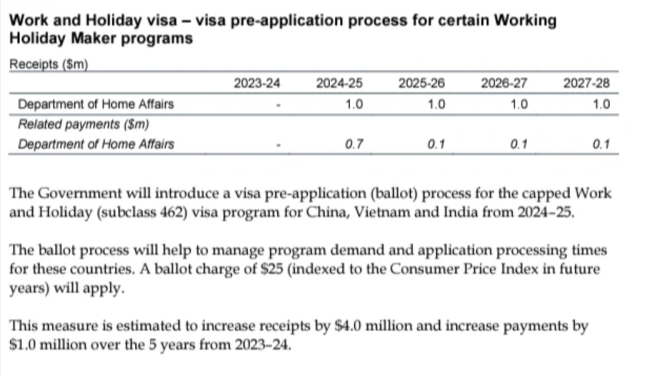 从2024-25年度开始, 面向中国、越南和印度的462打工度假签申请流程将面临全新的改革 。