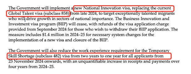 GTI杰出人才移民的配额相比上个财年也有所减少,2024-25财年配额是4000个。 GTI签证将被National Innovation visa国家创新签证所取代 。该签证主要是为了吸引优质企业家,重大投资者和全球研究人员。