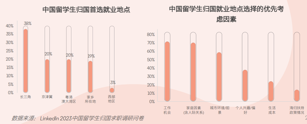 近日,全球大型招聘平台领英(LinkedIn)发布了《2024中国留学生归国求职洞察报告》。报告显示,超八成的留学生选择毕业后回国发展。
