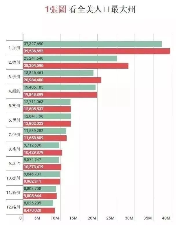 美国人口普查局(U.S. Census Bureau)最新数据显示加州、德州、佛州和纽约州人口数最高。但是人口净流失榜单,纽约州高居第一,加州、伊利诺州分列二、三位。