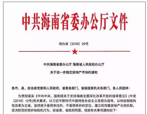 谁知道一个月不到,海南在原有的调控政策上又加码了!4月22日晚,中共海南省委办公厅、海南省人民政府办公厅发布《关于进一步稳定房地产市场的通知》(以下简称《通知》),从即日起海南实行严格的限购政策,在已出台限购政策的基础上,实施全域限购。