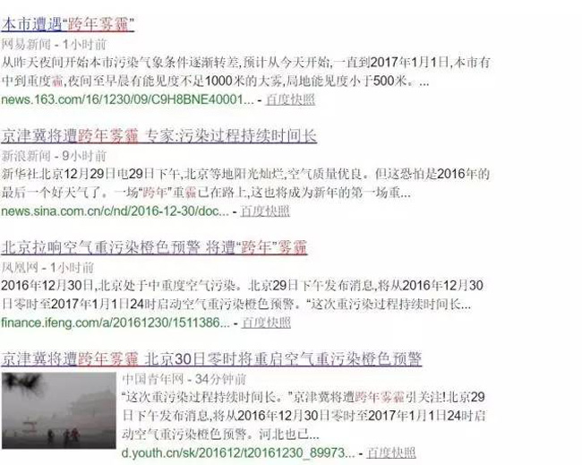 2016年12月30日,北京处于中重度空气污染。北京29日下午发布消息,将从2016年12月30日零时至2017年1月1日24时启动空气重污染橙色预警。“这次重污染过程持续时间长。”中国环境监测总站预报中心值班预报员王威介绍说,从29日晚上开始,京津冀及周边地区的污染过程可能持续到2017年1月6日……