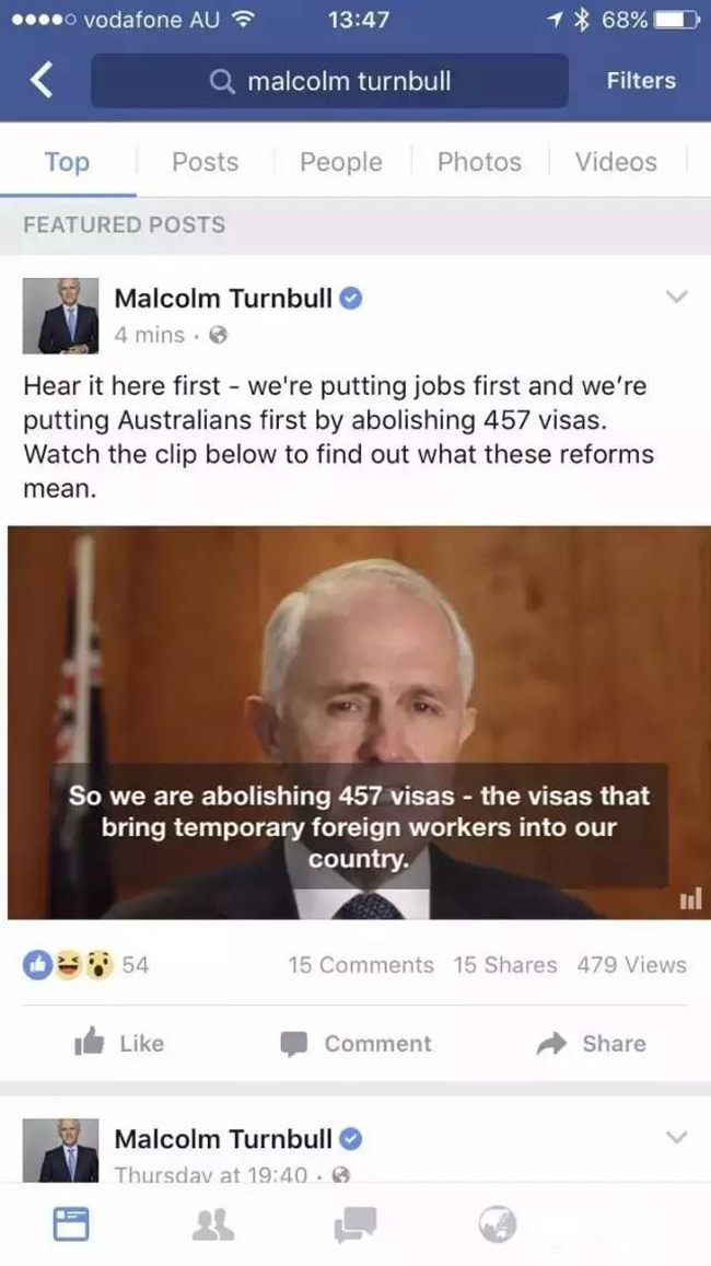 重磅消息!4月18日,澳洲总理Malcolm Turnbull在其官方 Twitter 和 Facebook 上发布了一段关于澳洲政府废除457 签证的视频,引发了澳洲移民圈的轩然大波!