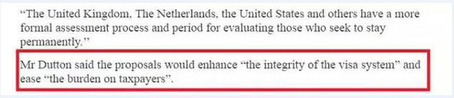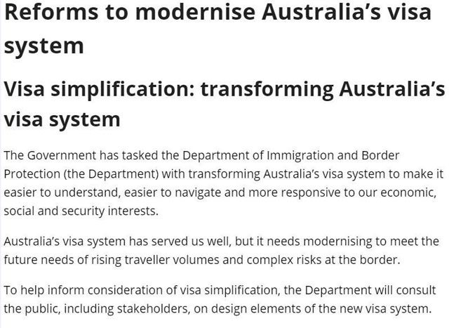 杜敦说:“在今年的预算中,为审查即将提供的服务,政府将在2年内提供3500万澳元。”杜敦说明,公告对签证持有人没有立即的影响,咨询期到9月15日。最终的改革方案将考虑咨询结果,并接受政府的进一步审批。