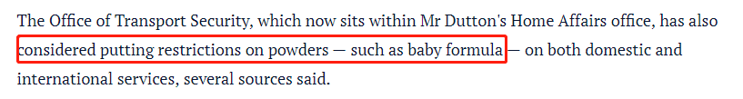不过,报道中还提到:以后的航班可能会限制托运婴儿奶粉!