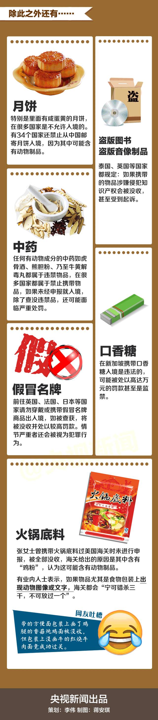 在外旅行,或多或少都会为亲朋好友带些手信。但如果这些礼品刚好是当地的土特产,大家就要格外注意了。请大家在出发前务必仔细阅读下图,避免因行李产生的不必要的困扰。