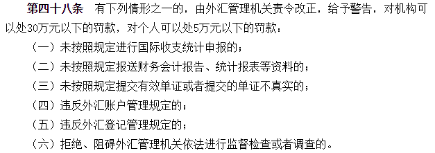 还有很多自认为“侥幸”逃过追踪的外汇者,在接下来的一段时间里可能被追查。根据《申请书》,如果违法违规套汇,除了可能被列入“关注名单”,此后两年都取消了5万购汇额度外,还可能面临逃汇金额30%左右罚款,以及5万元以下罚款。此外还将依据《中华人民共和国外汇管理条例》第三十九条、第四十条、第四十四条、第四十八条等给予处罚。