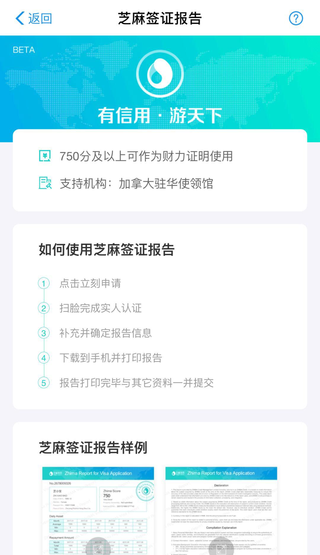 重磅!今后加拿大签证申请可以采用芝麻信用报告啦!芝麻信用达750分及以上,即可替代之前办理加拿大访问签证(旅游、探亲、短期学习、商务访问类签证)要求的存折、存单、存款证明。既然芝麻信用积分可以代替繁琐的资金材料,并且往往新政对签证的通过率很有帮助,所以对近期想要办理的小伙伴是个大利好。