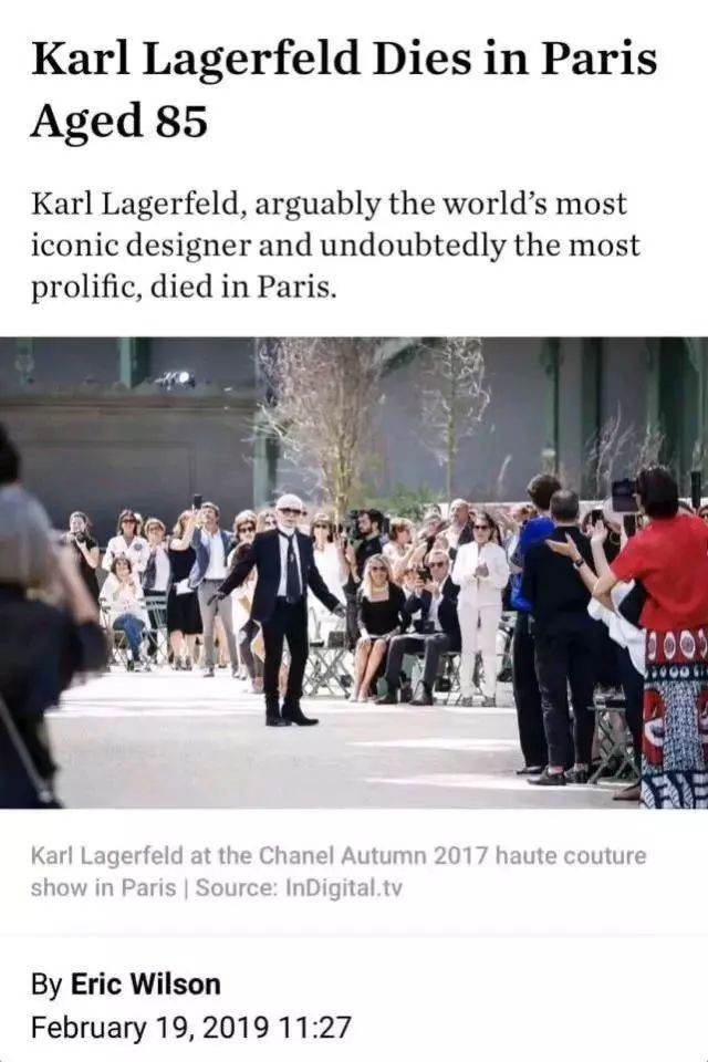 法国当地时间2月19日,人称“时装界的凯撒大帝”和“老佛爷”的Chanel传奇设计师卡尔•拉格斐因病去世,享年85岁!