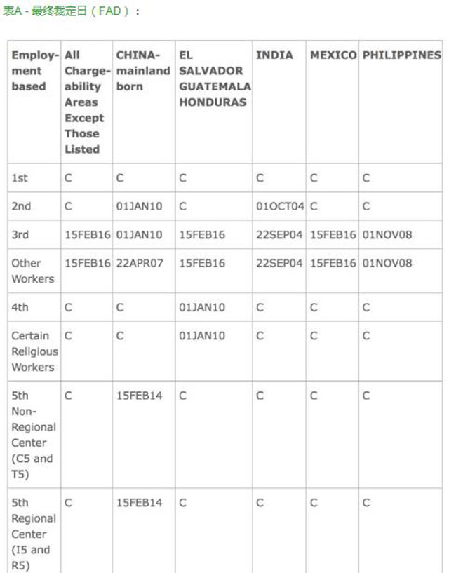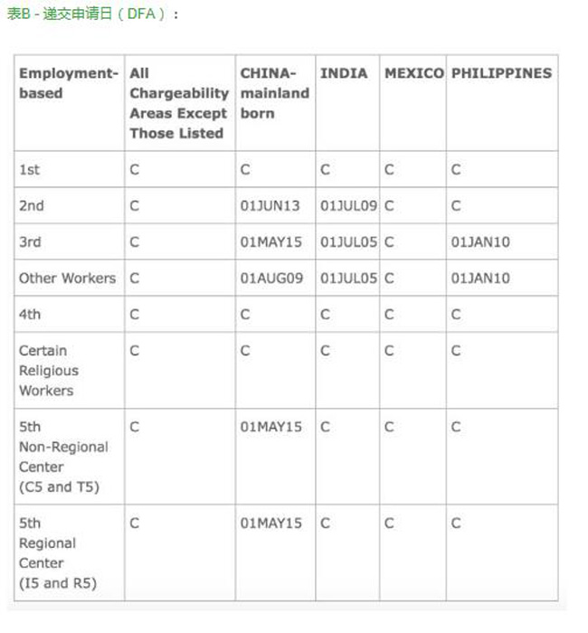 上面是两张排期表,有两个截止日。表A是最终裁定日(FAD),表B是递交申请日(DFA)。表A最终裁定日的截止日前进一周,而表B递交申请截止日一般会保持不变,这取决于移民局的态度。按照老规矩,移民局将在一周之内公布按照表A还是表B来接受I-485的申请。