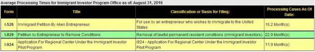 I-526的平均审理所需时间为16.2个月,加快近一个月;
