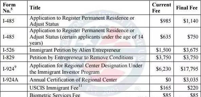 7.移民服务费(投资人登陆后制作绿卡的费用)从165美金上涨到220美金,增加55美金,增幅33%。