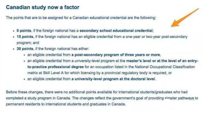 新的打分系统,让在加拿大顺利毕业的留学生可以获得更多分数,移民也将更有优势。对于徘徊在430-450分的申请者来说,当地学历的额外加分起了决定性的作用。所以好好学习,取得更高的学历,这一点还是很重要的。