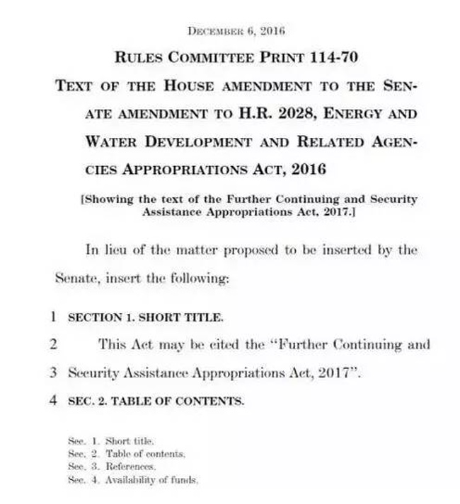 美国分公司今天第一时间获悉,国会山传来消息,众议院拨款委员会主席Hal Rogers如约公布了一项短期持续决议案(CR) (H.R. 2028)。