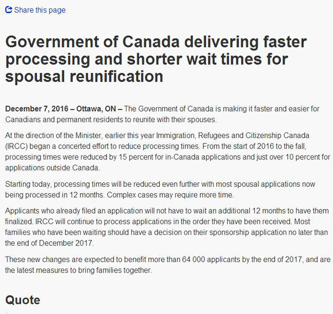 温哥华分公司第一时间收到最新消息,当地时间12月7日,加拿大移民部长麦家廉宣布了移民利好消息!为了要实现竞选承诺,让申请移民的夫妻更快团聚,政府将减少积案,把配偶团聚移民的审批时间控制在一年以内,并提高2017年的夫妻团聚名额,而申请程序也将更加简化!
