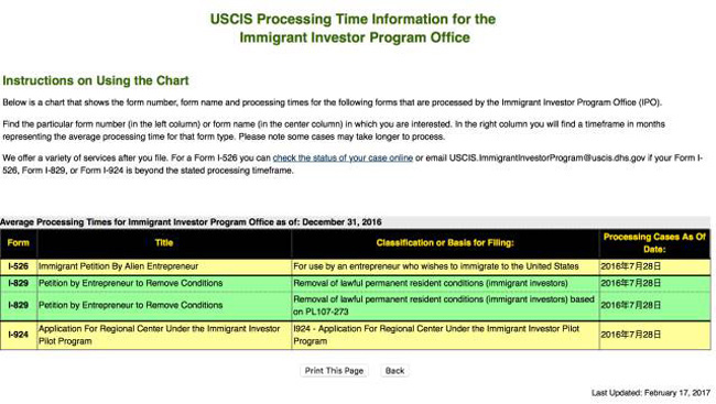 局在其官方网站公布了EB-5新版审案进度表,日期更新至2016年12月31日。值得一提的是,这个月的审批速度简直逆天了!