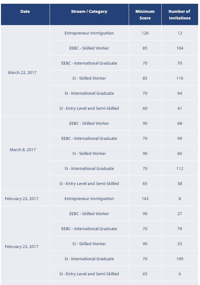 温哥华分公司提供的最新消息,加拿大当地时间3月22日,BCPNP进行了新一轮抽签,共有437位候选人获得邀请。就本次抽选结果来看,分数就几乎降到近来最低的状态,备受瞩目的International Graduates(国际留学生)类别邀请分数依然牢牢锁定在70分,而skilled worker直降了5分!