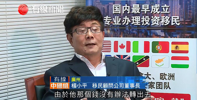 杨董:由于政府对大额的投资持反对态度,我们作为一个移民公司,主要是提供移民上法律的服务。我们不是投资顾问,也不是金融顾问,更不是外汇转账的顾问。总之,林林总总、各式各样的办法都在市面上存在。但是,我们仍然觉得,当前大的形势由国家掌控。