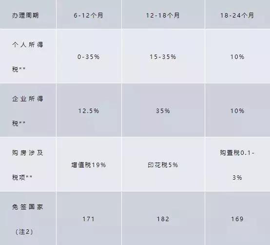 * 塞浦路斯和马耳他的最低投资额如本表,保加利亚的最低投资额为融资方式27万欧元