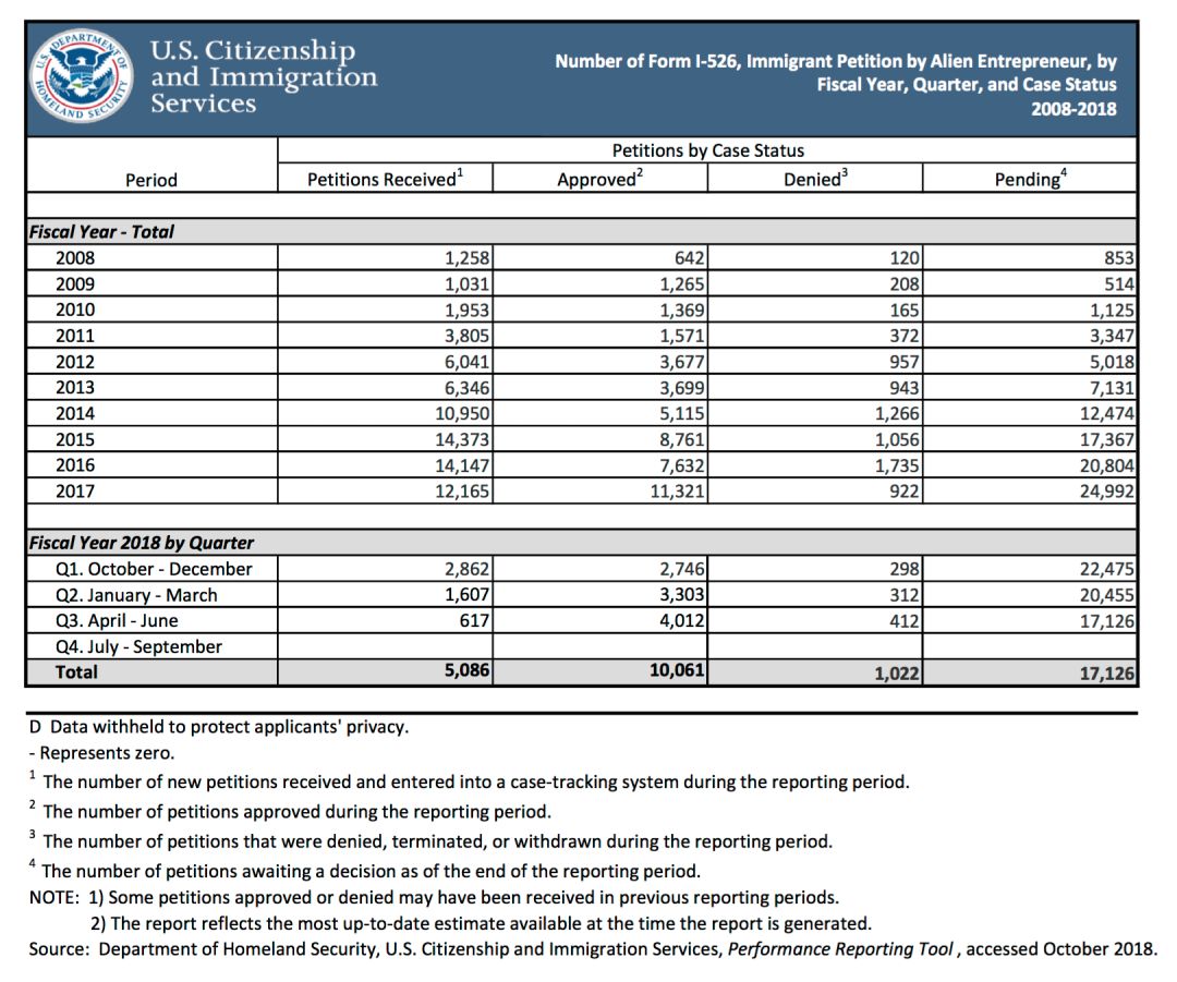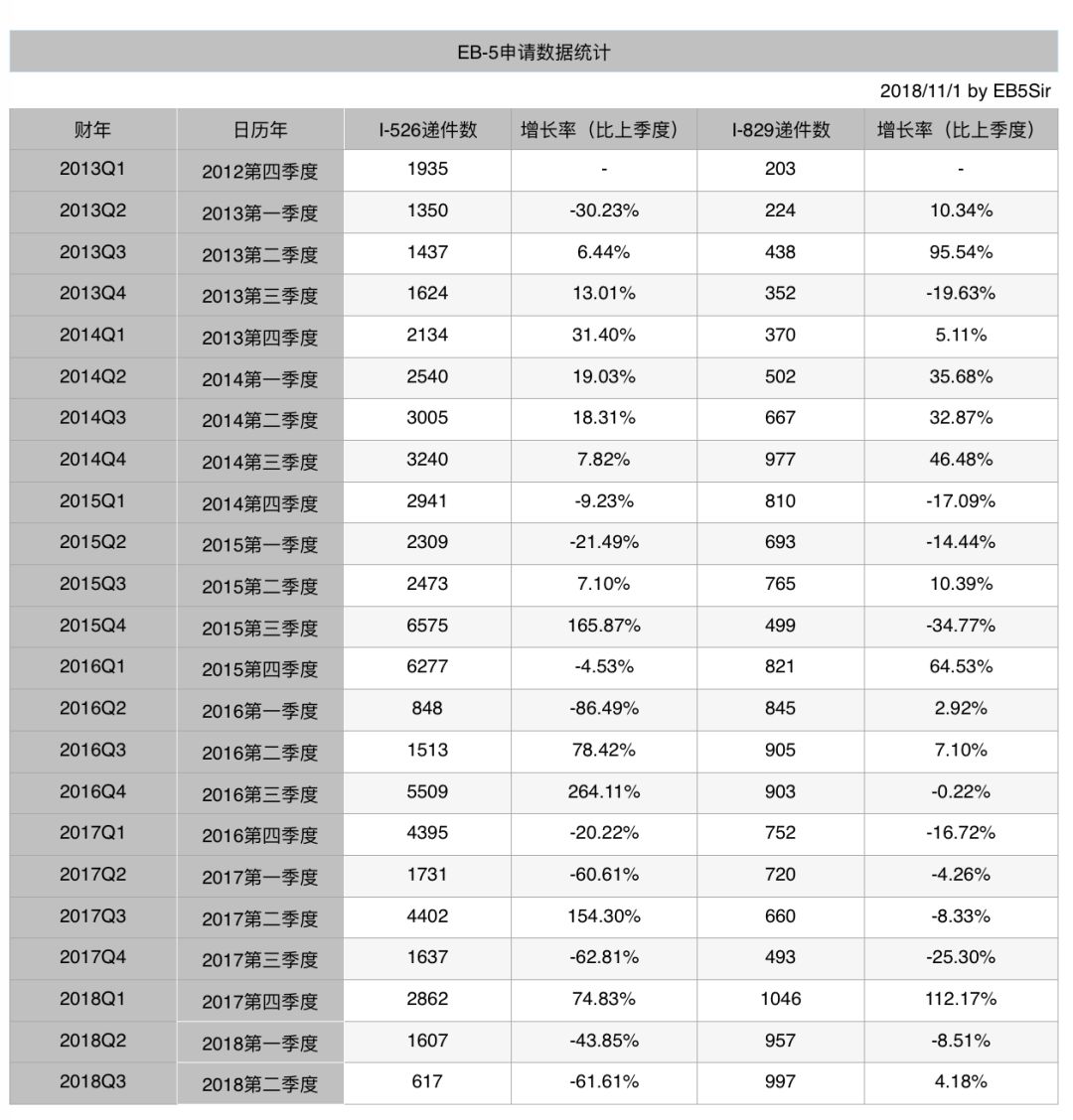 最新消息, 局公布了2018财年第三季度(2018年4月1日至6月30日)的EB-5案件递件和审批数据。
