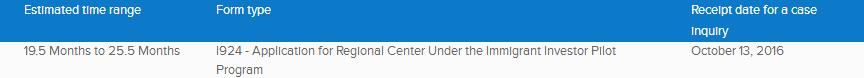 近日, 局在其官网更新了EB-5案件平均审批进度。截至11月6日,EB-5审案最新进度:(1)I-526预计审案时间为20.5-26.5个月,案件查询日期为2016年9月4日。(2)I-829预计审案时间为30-39个月,案件查询日期为2015年9月6日。(3)I-924预计审案时间为19.5-25.5个月,案件查询日期为2016年10月13日。