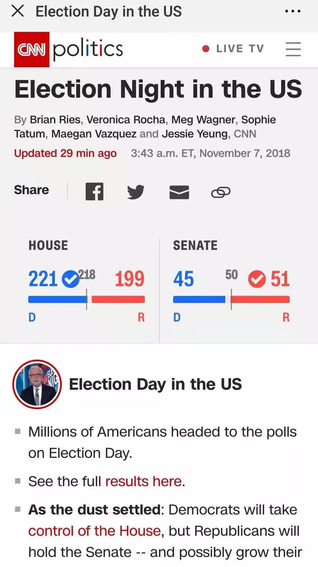 当地时间11月7日,美国中期选举结果出炉:民主党八年来首次逆袭赢下了众议院,而共和党保住了参议院。