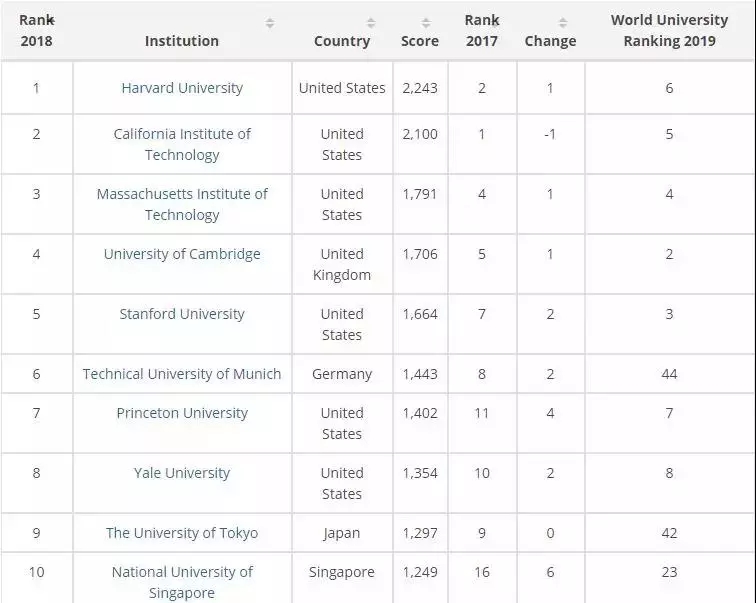 11月15日,泰晤士高等教育(Times Higher Education)发布了2018年全球大学毕业生就业能力排行榜。在这份排行榜中,前十名的学校有哈佛大学、加州理工学院、麻省理工学院、剑桥大学、斯坦福大学、慕尼黑理工大学、普林斯顿大学、耶鲁大学、东京大学和新加坡国立大学。在上榜的前150所高校中有13所中国高校,其中中国大陆7所,中国香港4所,中国台湾2所。香港科技大学排名最高,位列第16位,北京大学和上海交通大学紧随其后,分列第19和第36位。另外,中国大陆共有4所高校进入百强,它们分别是北京大学、上海交通大学、复旦大学和清华大学。