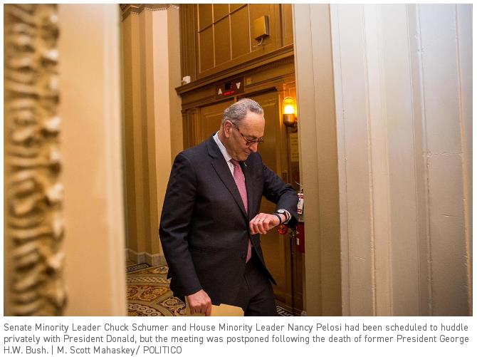 Schumer和Pelosi原计划本周二单独与川普进行谈判建墙预算,但是,老布什的离世,打乱了磋商谈判的进程,该谈判被延期到12.11。