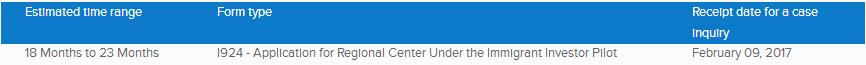•I-924预计审案时间为18-23个月,案件查询日期为2017年2月9日。