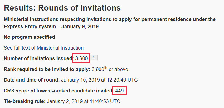 当地时间1月10日,Express Entry进行了新一轮的邀请,不分职业,不分类别,本轮最低邀请分数449分,邀请人数3900人。相较上一轮邀请,获邀分数上涨10分,获邀人数则持平。在目前的EE选池中,431-440的区间里有9105人,441-450的区间里还有868人。比较2017-2018两年的配额和分数,不难看出,2018年抽选的总人数和每一轮抽选的人数都比2017年要多,2019年在配额方面会比2018年更多,总体形势仍然会比较平稳。