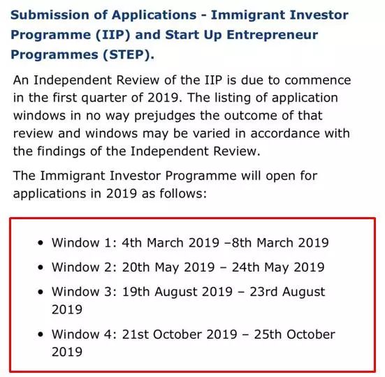 当地时间12月17日,爱尔兰移民归化局在其官网发布了明年投资移民的申请递交窗口期。2019年全年将有四个递交窗口期:2019年3月4日-3月8日、2019年5月20日-5月24日、2019年8月19日-8月23日、2019年10月21日-10月25日。重要变更事项:(1)2019年IIP递交窗口期数量将从2018年的5次减为4次。(2)2019年IIP每个递交窗口期时长从2018年的两周缩短为5天。(3)针对IIP的独立审核将于2019年第一季度开始,根据审核结果修订的IIP法案也将于2019年2月8日前发布,2019年所有的申请都必须遵守更新后的法案要求。(4)在此期间,爱尔兰司法部还将加强针对IIP的尽职调查和审核,如反洗钱等。