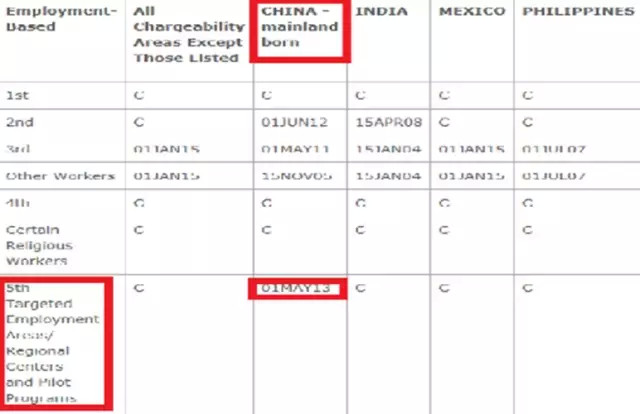 美国国务院签证办公室在东部时间4月13日下午5点公布的签证公告表