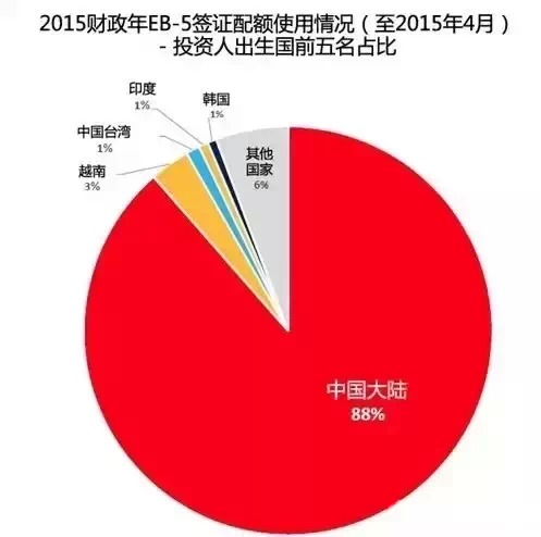 美国国务院近期披露了最近的2015财政年EB-5签证配额使用情况(截止到四月)。并以图标的形式直接形象地告知给所有的投资者。