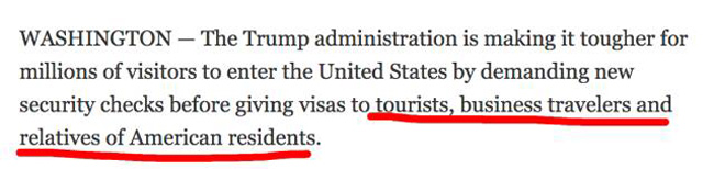 美国当地时间3月24日,《纽约时报》报道:上周,美国所有大使馆都收到了来自国务卿蒂勒森的一份外交电文,其中明确要求领事官员全面加强签证审核!并毫不掩饰地表示:获得签证的过程将会变得更加困难,时间也会更长!