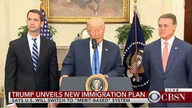 重磅消息!当地时间8月2日,美国总统川普在白宫正式宣布了新的移民改革政策(正是此前参议员Tom Cotton和David Perdue提出的严苛移民法案),将限制目前占据合法移民最多数的亲属移民名额,减半难民的绿卡名额,同时取消H1B抽签!