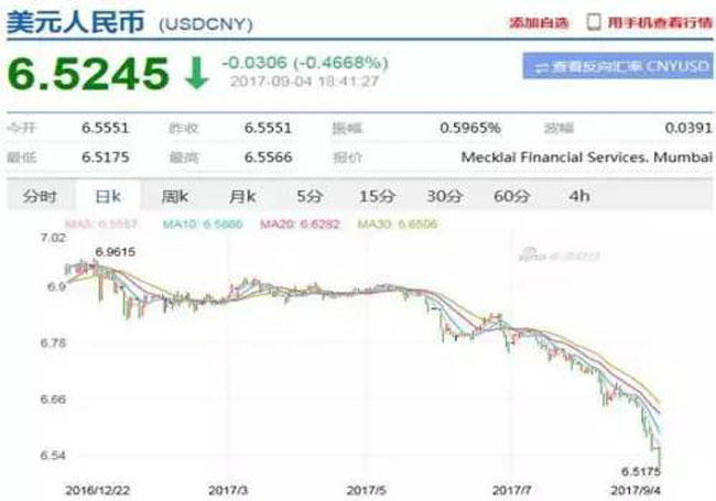 去年年底或今年年初用人民币狂换美元的人要哭了,短短8个多月时间,人民币兑美元大幅升值,从去年年底汇率接近7,升值到了现在的6.53左右。简单测算,一个居民去年年底或今年年初换100万美元,要比9月5日换100万美元,多花费43万人民币……43万人民币啊……