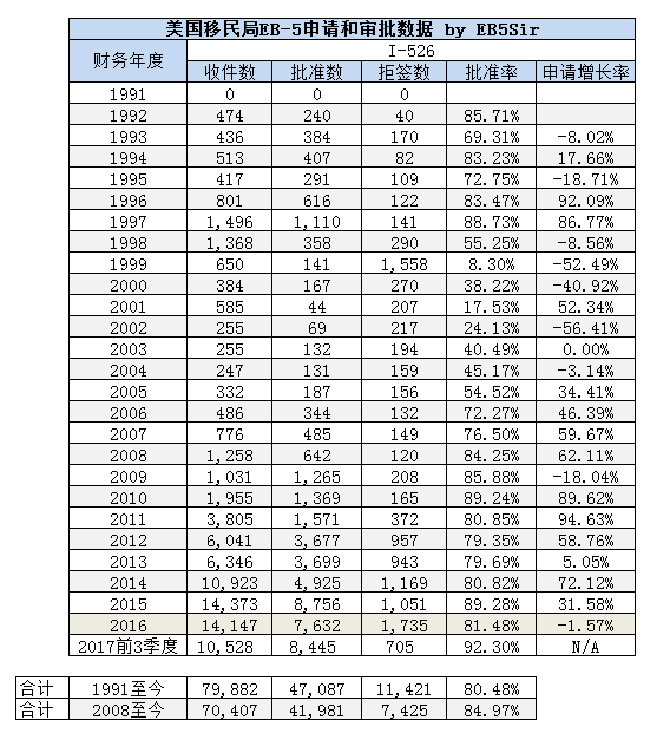 3.I-526申请审批历史数据和I-829申请审批历史数据。