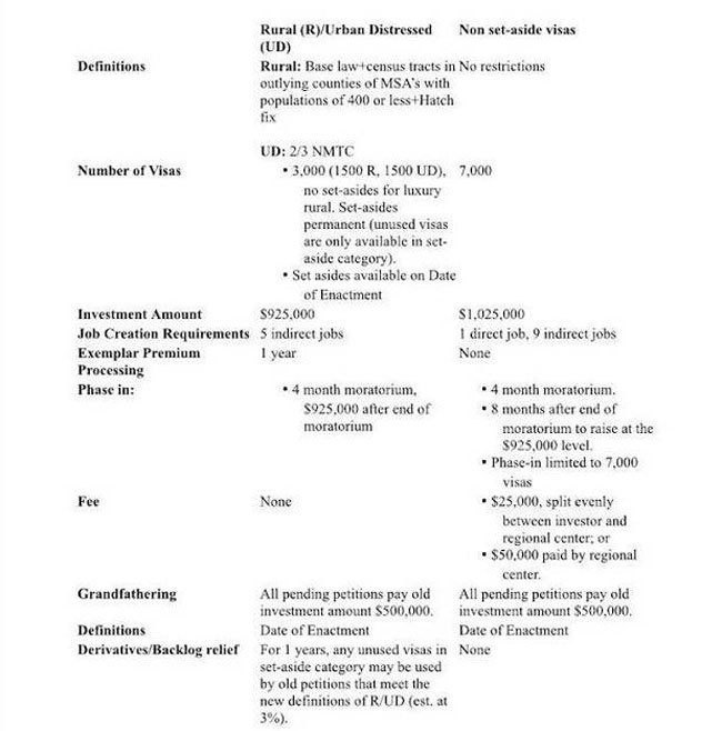 据悉,参众两院的司法委员会主席已经就EB-5计划达成了一项“最后、最好、也是最终的报价”。在过去的这段时间里,代表城市派和农村派的EB-5行业利益相关者一直在忙于与Grassley及Goodlatte开会讨论,闭门造车,于是形成了这份提案。据说,参议员Leahy和Cornyn也有参与。