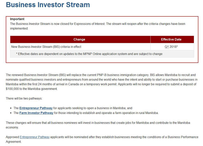 二.曼省投资移民2018年实施新政